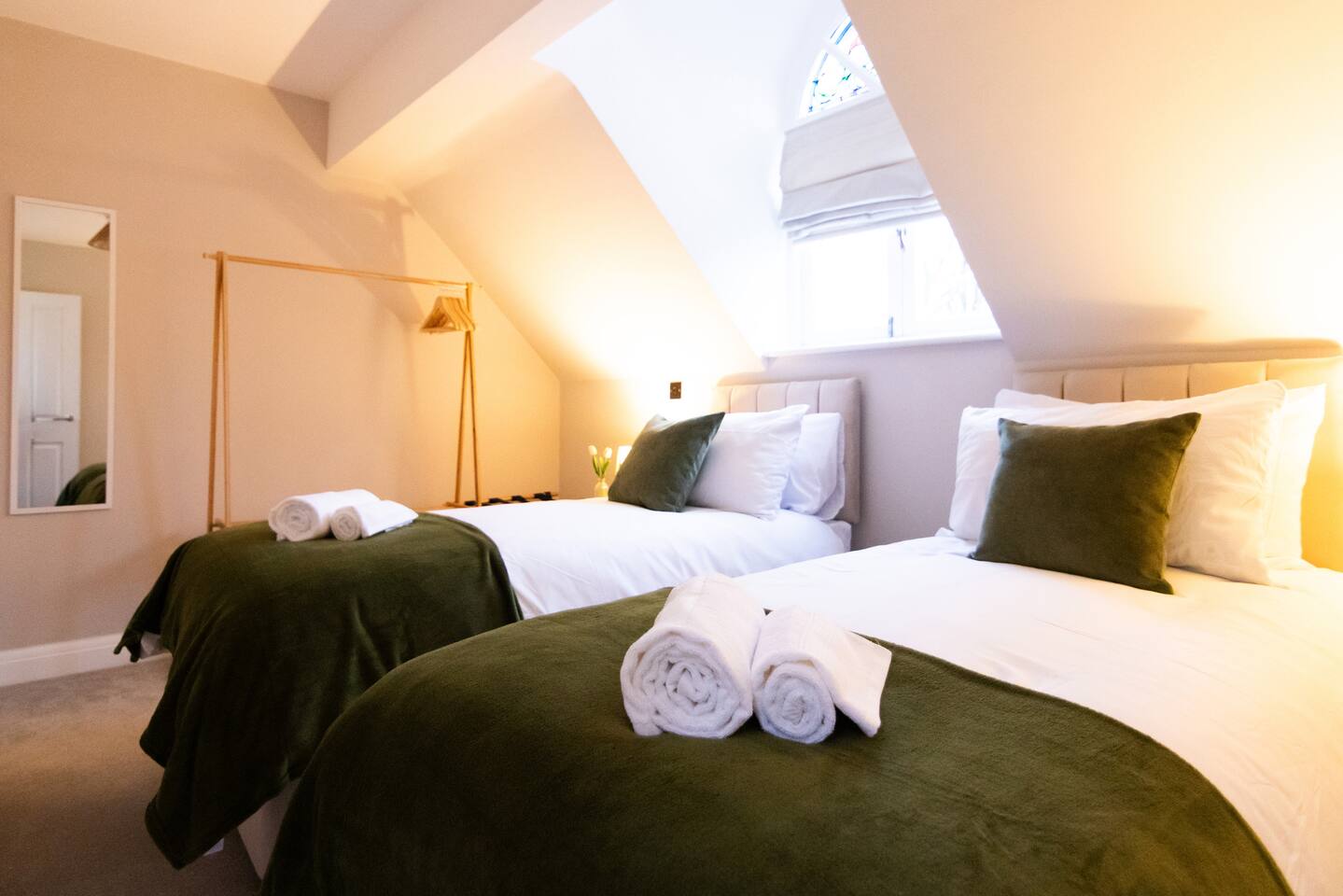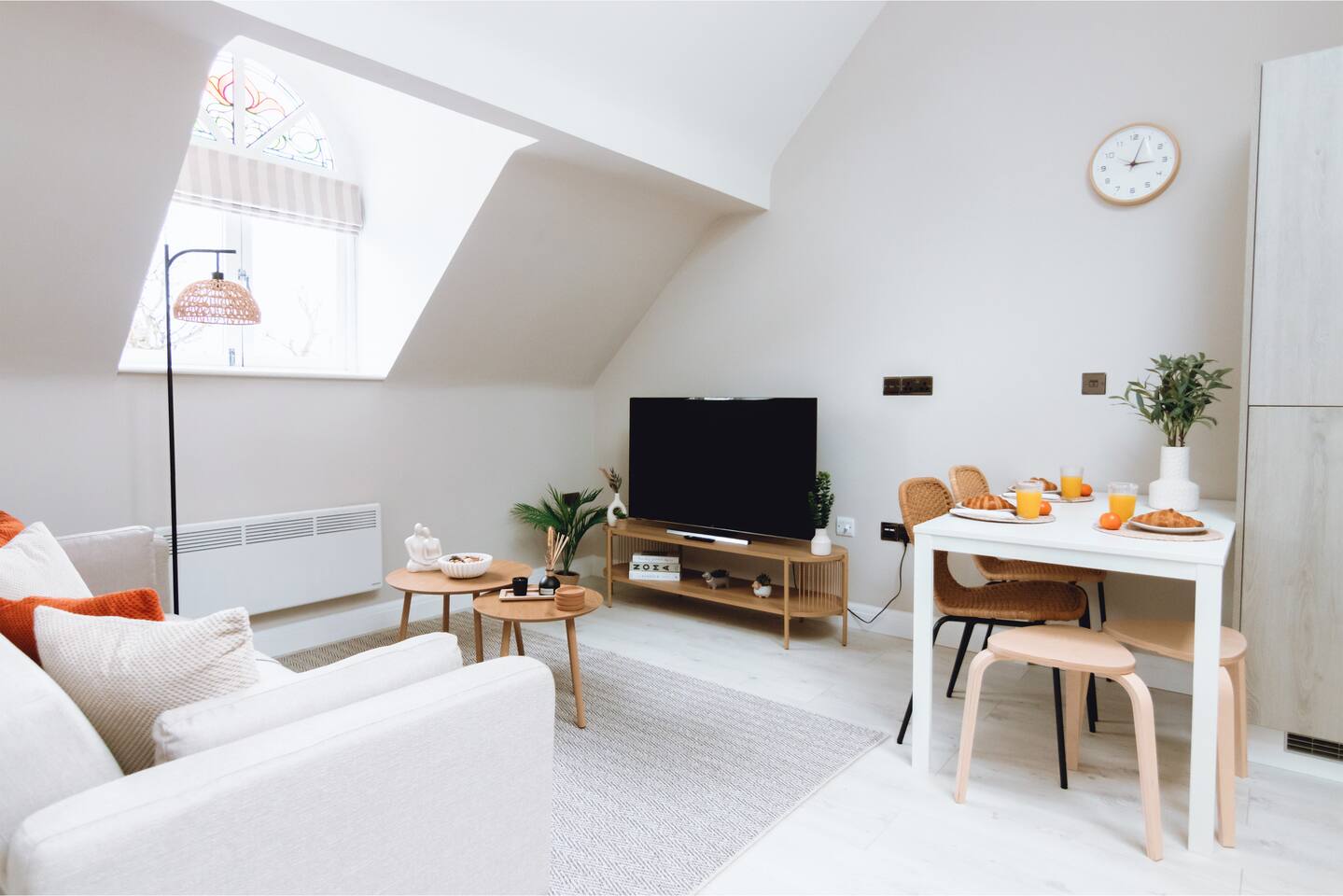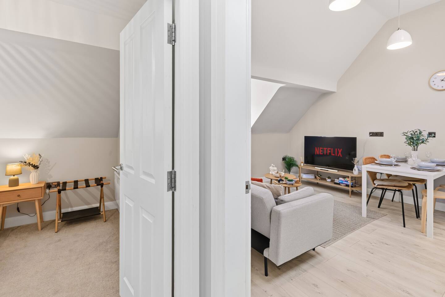 ✪ Living Space Bright and airy with high ceilings and Nordic-style decor. A cozy sofa and Smart TV create a comfortable space to relax after a long day. ✪ Bedrooms • Bedroom 1 – Double bed with soft linens and open wardrobe • Bedroom 2 – Zip-link bed (king or two singles), ideal for families or colleagues ✪ Bathrooms • Two modern bathrooms: one with a shower over bath, one en-suite with a walk-in shower • Fresh towels and complimentary toiletries provided ✪ Kitchen & Dining • Fully equipped with oven, microwave, fridge/freezer, kettle, and toaster • Cooking essentials, pots, pans, and tableware included • Extendable dining table (120cm-180cm), perfect for meals or work. ✪ Parking & Transport • Free off-street parking plus a reserved space • 5-minute walk to Davenport Station with direct trains to Manchester and Stockport • Quick access to the M60 and A6, ideal for business travelers and contractors. ✪ Prime Location • 9-minute drive to Stepping Hill Hospital, perfect for NHS staff and visitors • 5-minute drive to Stockport Town Centre for shopping, supermarkets, and dining • Restaurants, cafés, and bars within walking distance • Close to Manchester Airport and business hubs. ✪ Additional Amenities • High-speed WiFi and Smart TV • Self-check-in for a hassle-free stay • Washing machine inside the apartment • Heating for year-round comfort Book now for a stylish and seamless stay in Stockport